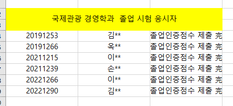 국제관광경영학과 졸업시험 및 졸업논문작성 대상 학생은 대상자 명단 (PDF 첨부파일) 확인 후,